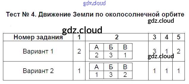 Ответы. Земля как планета солнечной системы по Географии 5 класс Тесты Пятунин УМК Экзамен