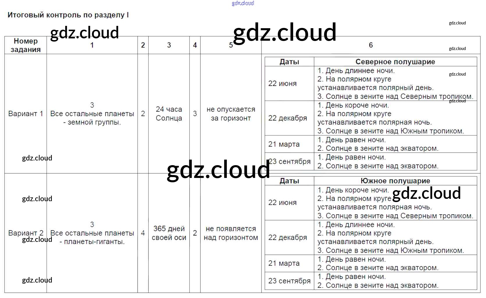 Ответ на задание Итоговый контроль Тесты География за 5 (пятый) класс Пятунин, Пятунина УМК 2017