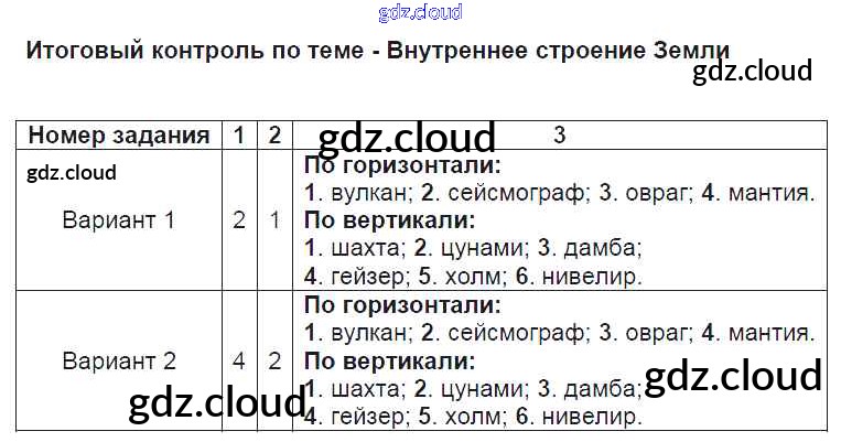 Ответы. Внутреннее строение земли по Географии 5 класс Тесты Пятунин УМК Экзамен