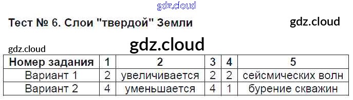 Ответы. Внутреннее строение земли по Географии 5 класс Тесты Пятунин УМК Экзамен