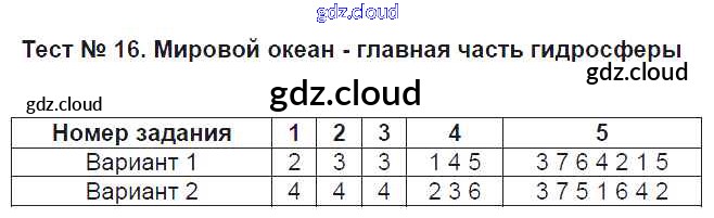 Ответ на задание Тест 16 Тесты География за 5 (пятый) класс Пятунин, Пятунина УМК 2017 ФГОС онлайн и без номера телефона.