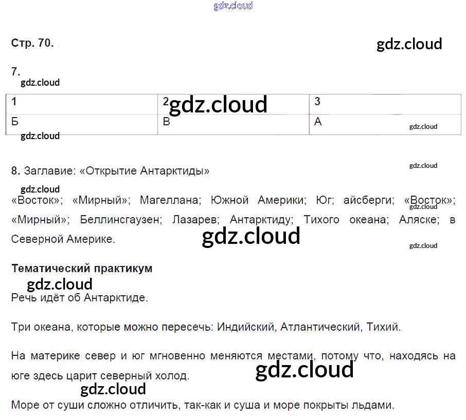 Ответ на задание 70 Тетрадь-практикум География за 5 (пятый) класс Молодцов Инновационная школа 2015 ФГОС онлайн и без номера телефона.