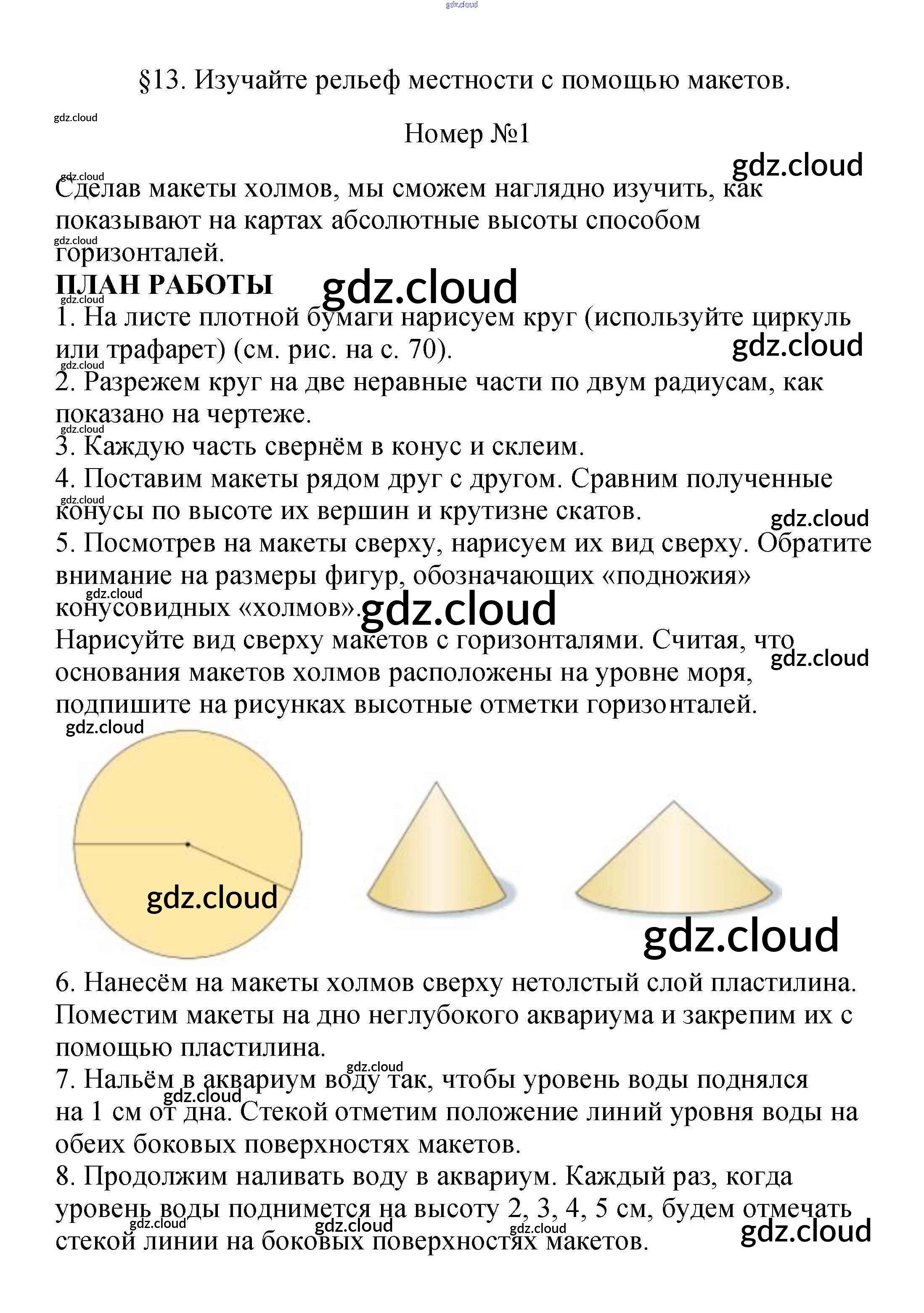 Изучайте рельеф местности с помощью макетов Ответы к §13. Изображение рельефа на топографических планах и картах по Географии 5 класс Учебник Летягин Просвещение