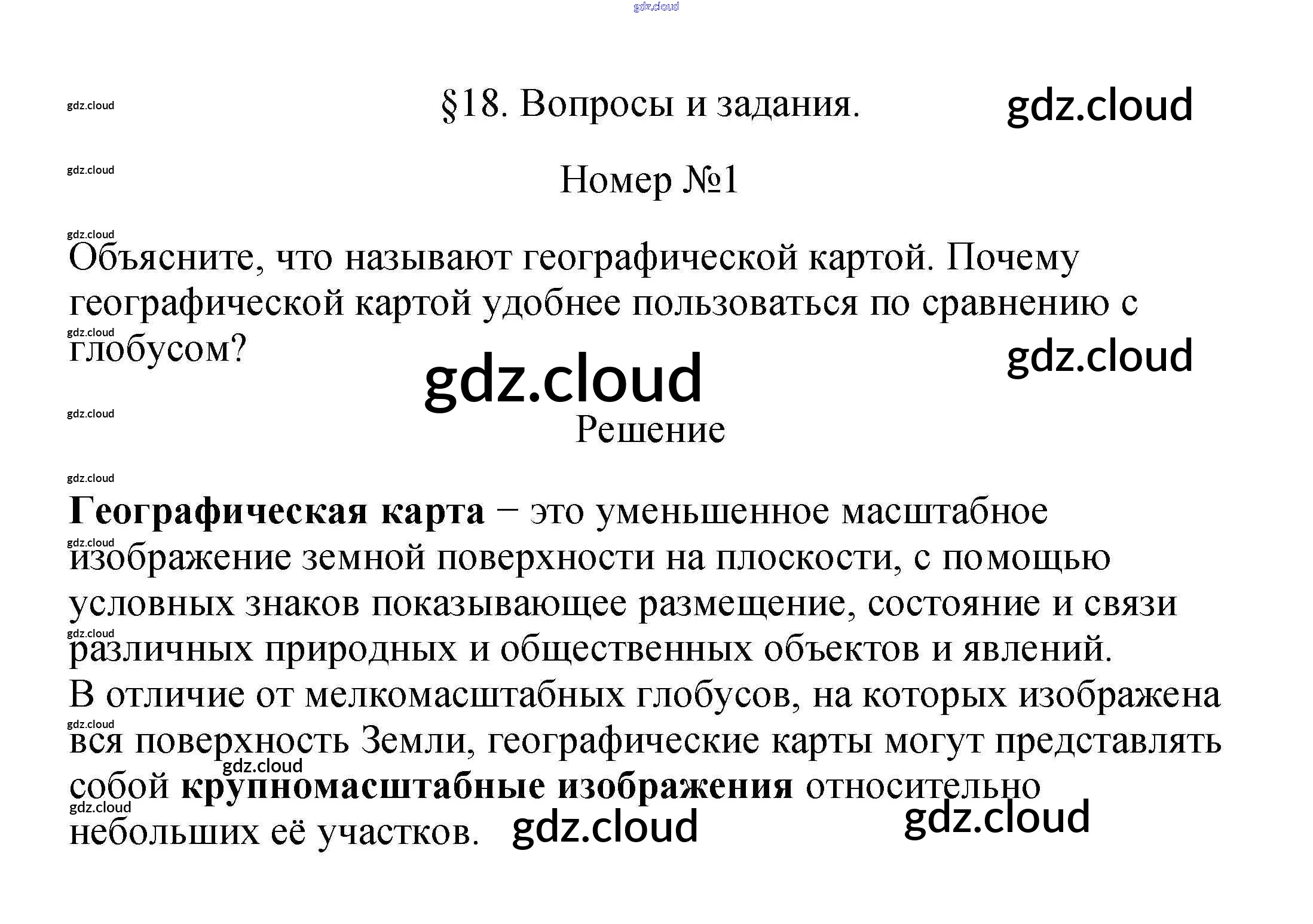Вопросы и задания Ответы к §18. Географическая карта по Географии 5 класс Учебник Летягин Просвещение