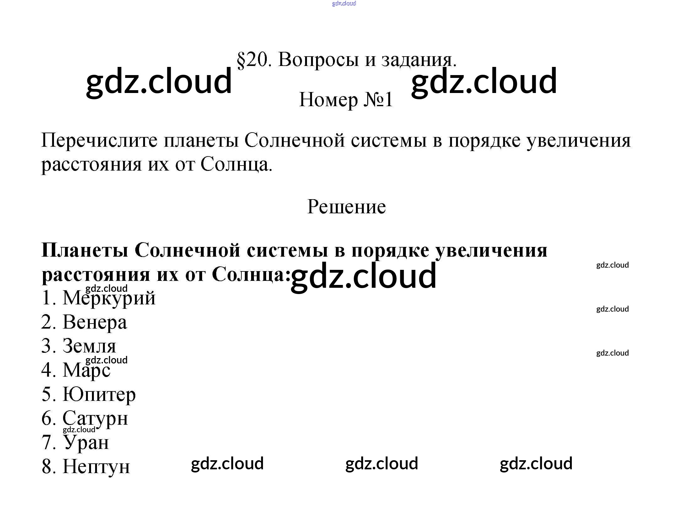 Вопросы и задания Ответы к §20. Земля среди других планет Солнечной системы по Географии 5 класс Учебник Летягин Просвещение