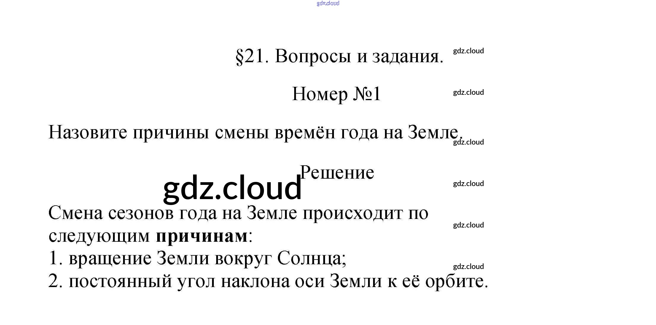 Вопросы и задания Ответы к §21. Движение Земли по околосолнечной орбите по Географии 5 класс Учебник Летягин Просвещение