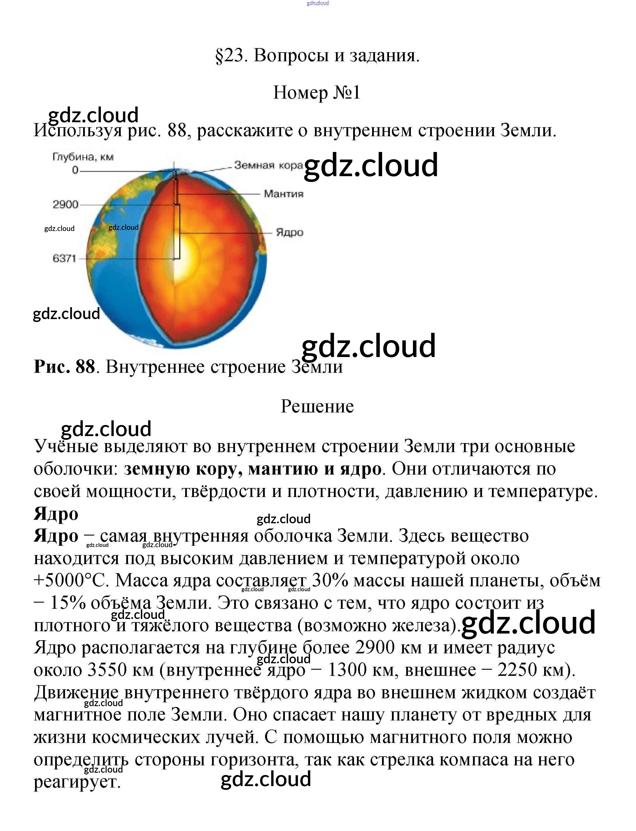 Вопросы и задания Ответы к §23. Внутреннее строение Земли. Строение земной коры по Географии 5 класс Учебник Летягин Просвещение