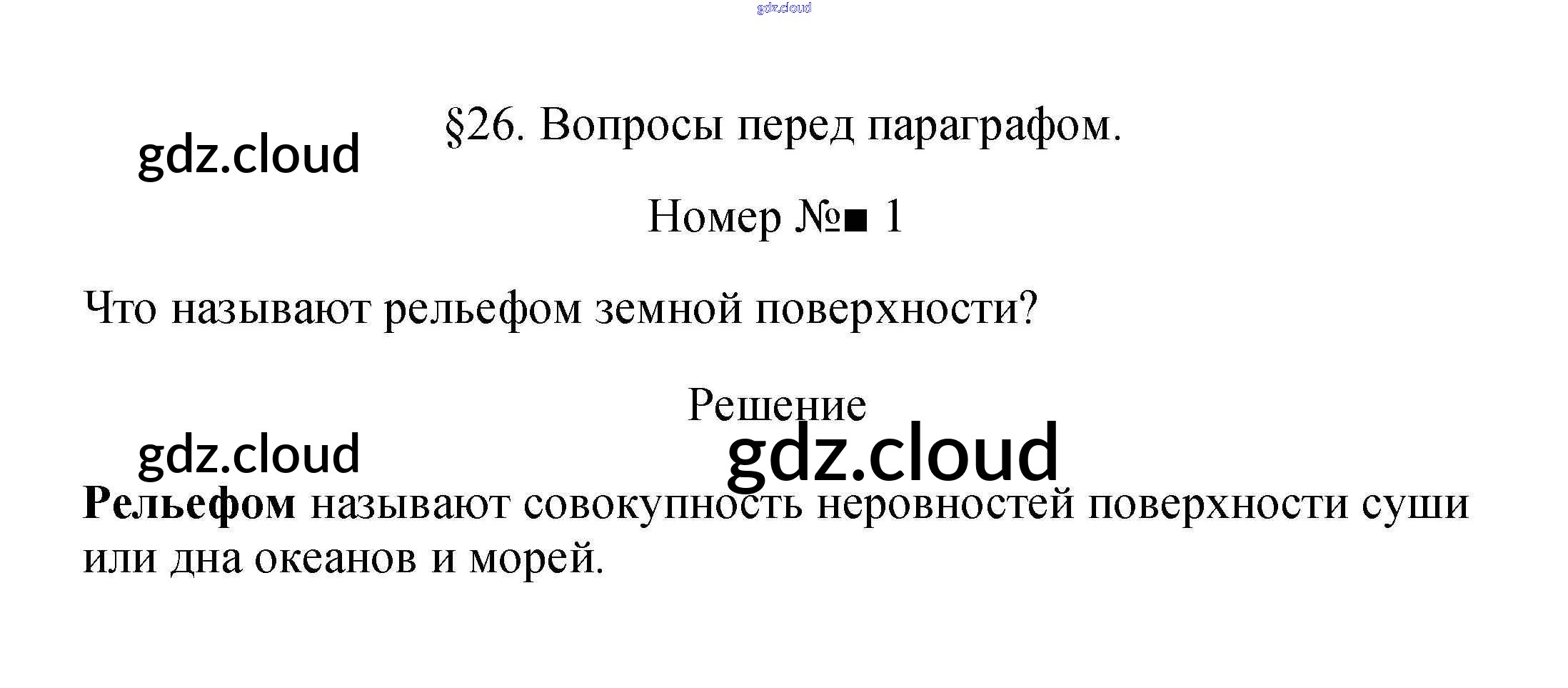 Вопросы перед параграфом Ответы к §26. Рельеф земной поверхности по Географии 5 класс Учебник Летягин Просвещение
