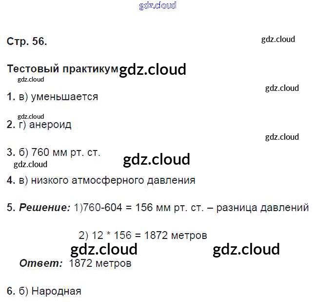 Ответ на задание 56 Тетрадь-практикум География за 6 (шестой) класс Болотникова Инновационная школа 2017 ФГОС онлайн и без номера телефона.