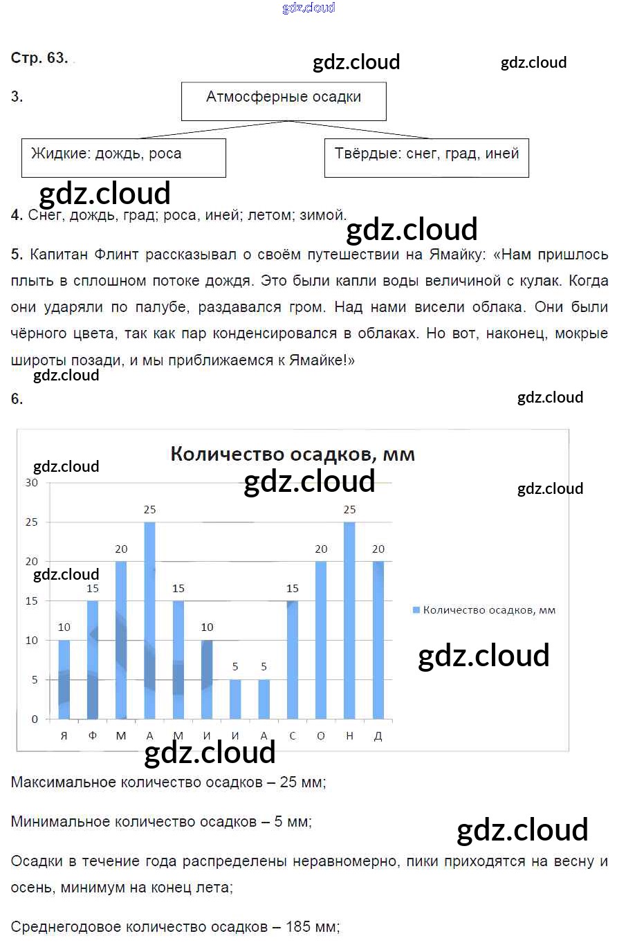 Ответ на задание 63 Тетрадь-практикум География за 6 (шестой) класс Болотникова Инновационная школа 2017 ФГОС онлайн и без номера телефона.