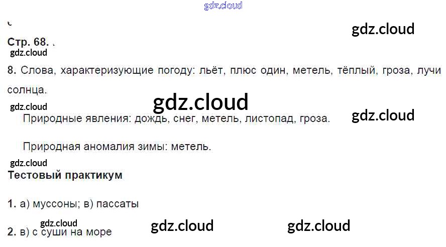 Ответ на задание 68 Тетрадь-практикум География за 6 (шестой) класс Болотникова Инновационная школа 2017 ФГОС онлайн и без номера телефона.