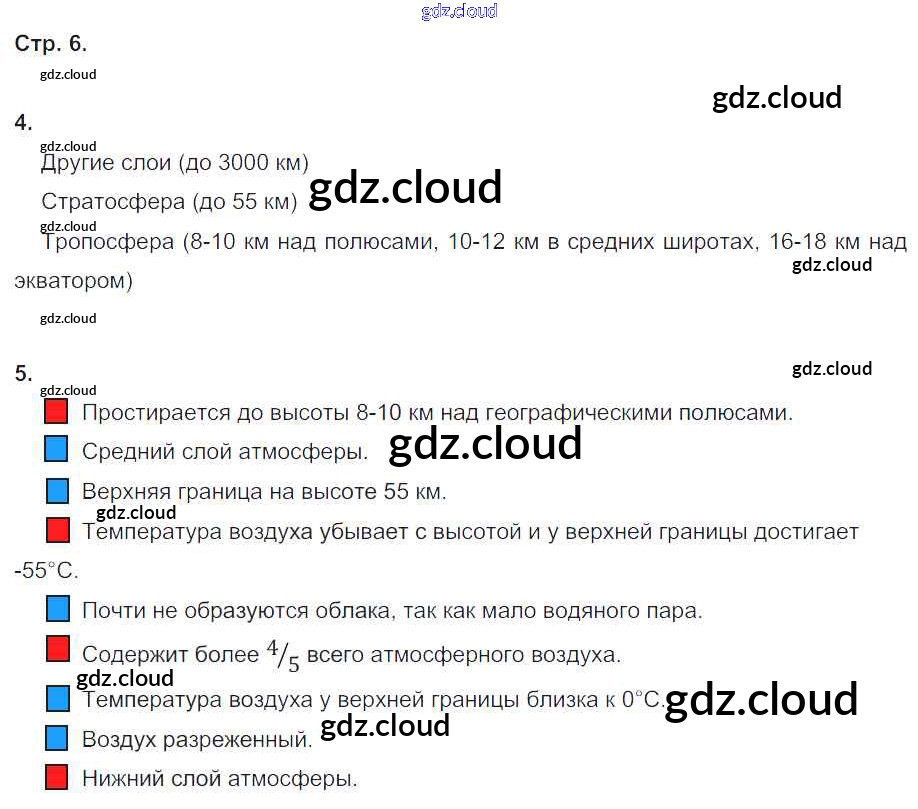 Ответы к теме Атмосфера (страницы тетради) по Географии 6 класс Рабочая тетрадь Дронов Вертикаль Дрофа