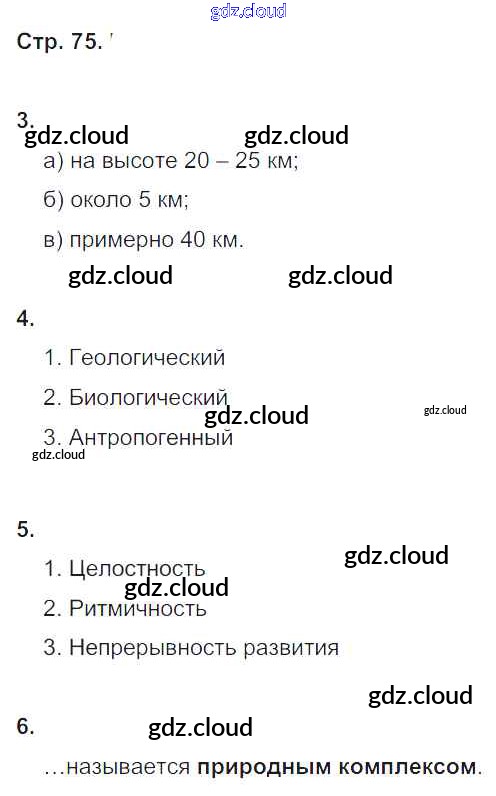 Ответ на задание 75 Рабочая тетрадь География за 6 (шестой) класс Дронов, Савельева Вертикаль 2016