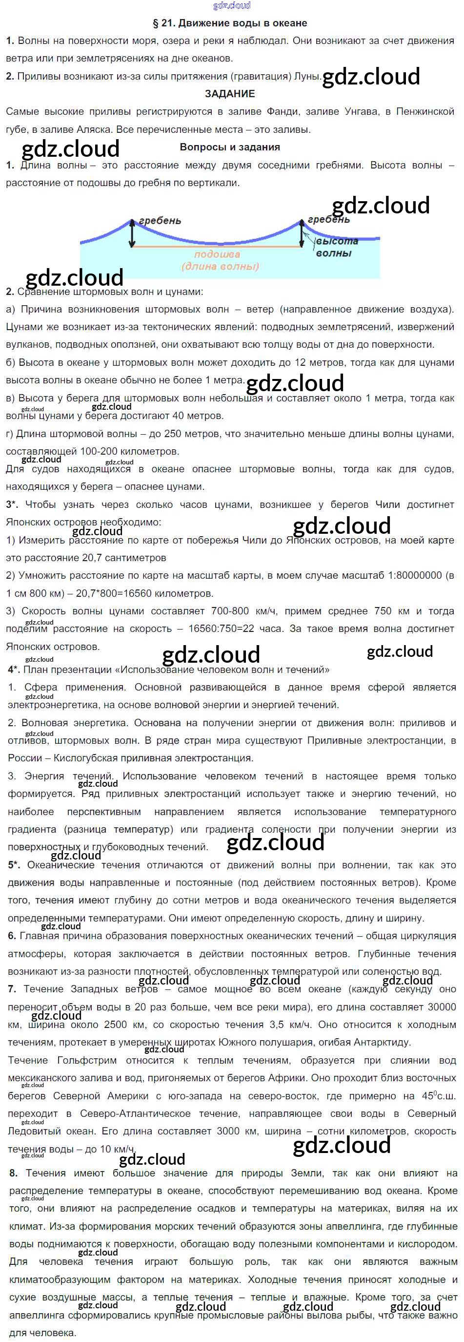 Ответ на задание §21. Движение воды в океане Учебник География за 6 (шестой) класс Герасимова, Неклюкова Вертикаль 2019