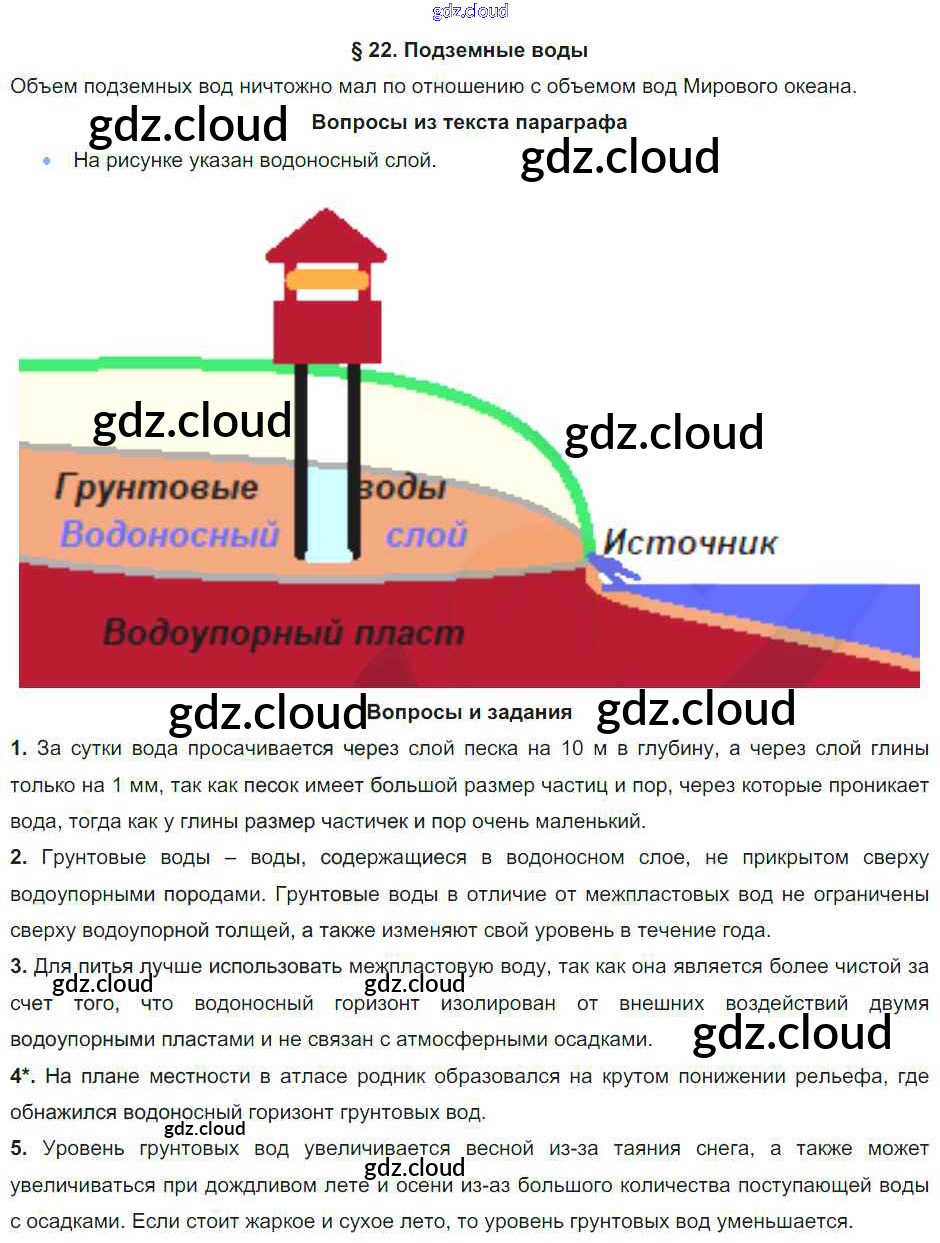 Ответ на задание §22. Подземные воды Учебник География за 6 (шестой) класс Герасимова, Неклюкова Вертикаль 2019