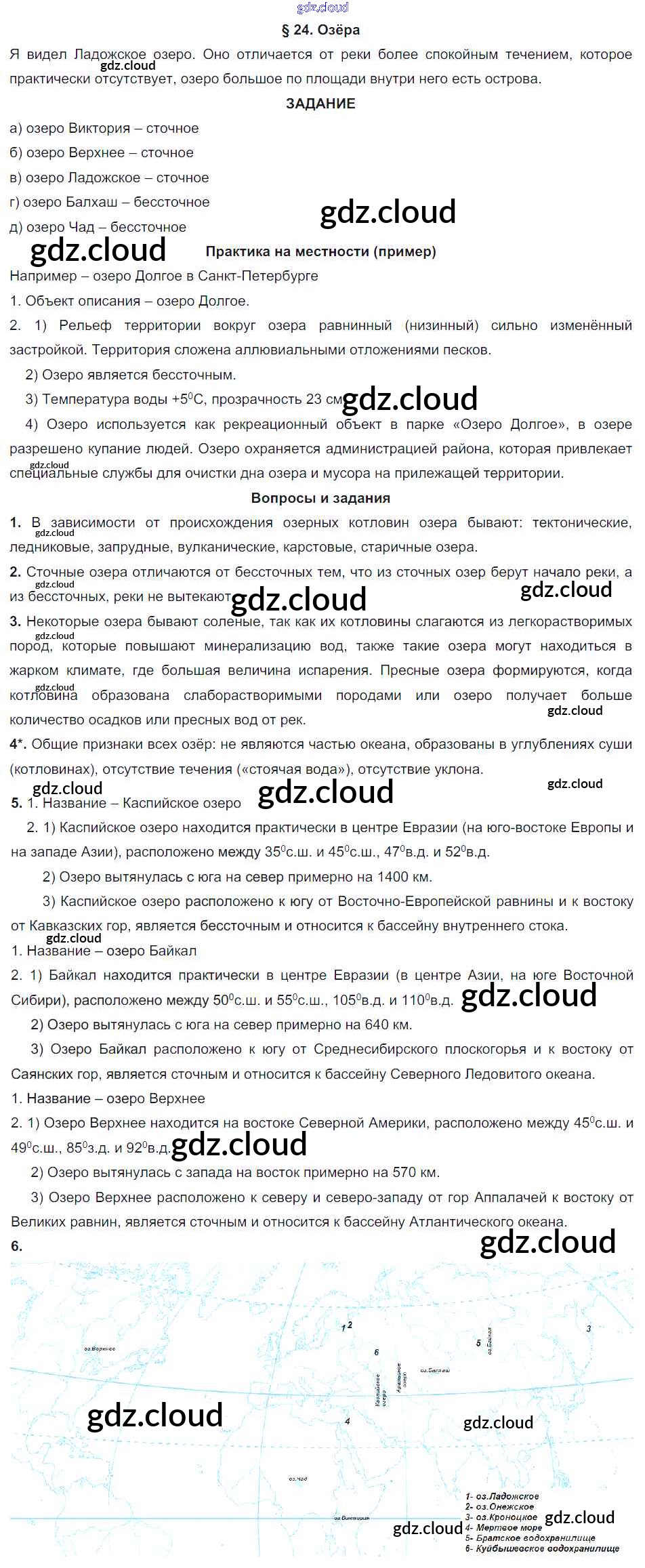 Ответ на задание §24. Озёра Учебник География за 6 (шестой) класс Герасимова, Неклюкова Вертикаль 2019 ФГОС онлайн и без номера телефона.