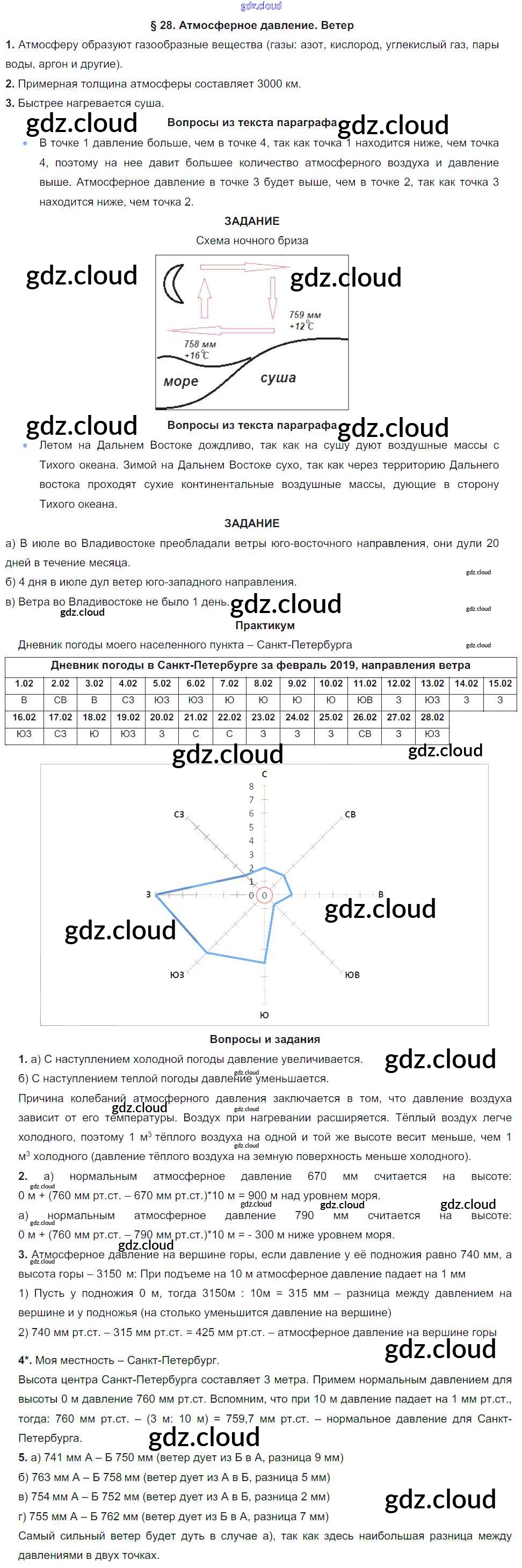 Ответ на задание §28. Атмосферное давление. Ветер Учебник География за 6 (шестой) класс Герасимова, Неклюкова Вертикаль 2019