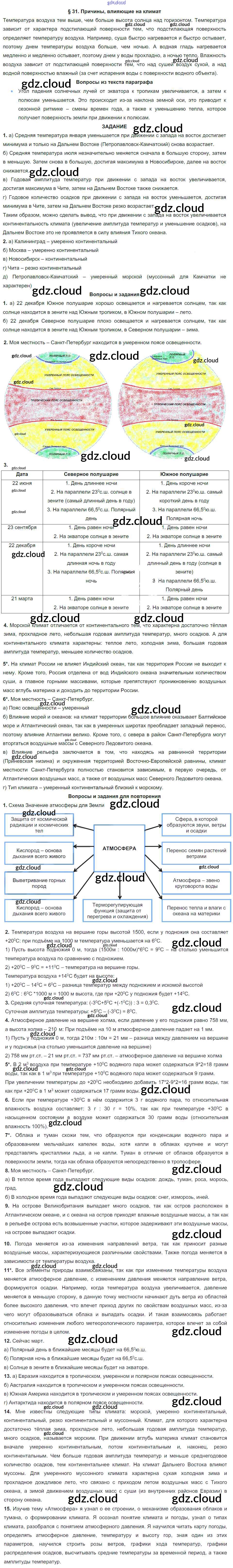 Ответ на задание §31. Причины, влияющие на климат Учебник География за 6 (шестой) класс Герасимова, Неклюкова Вертикаль 2019