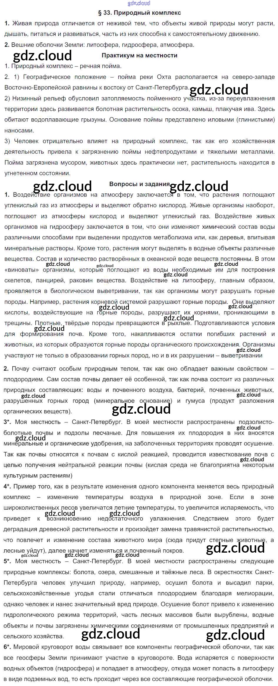 Ответ на задание §33. Природный комплекс Учебник География за 6 (шестой) класс Герасимова, Неклюкова Вертикаль 2019