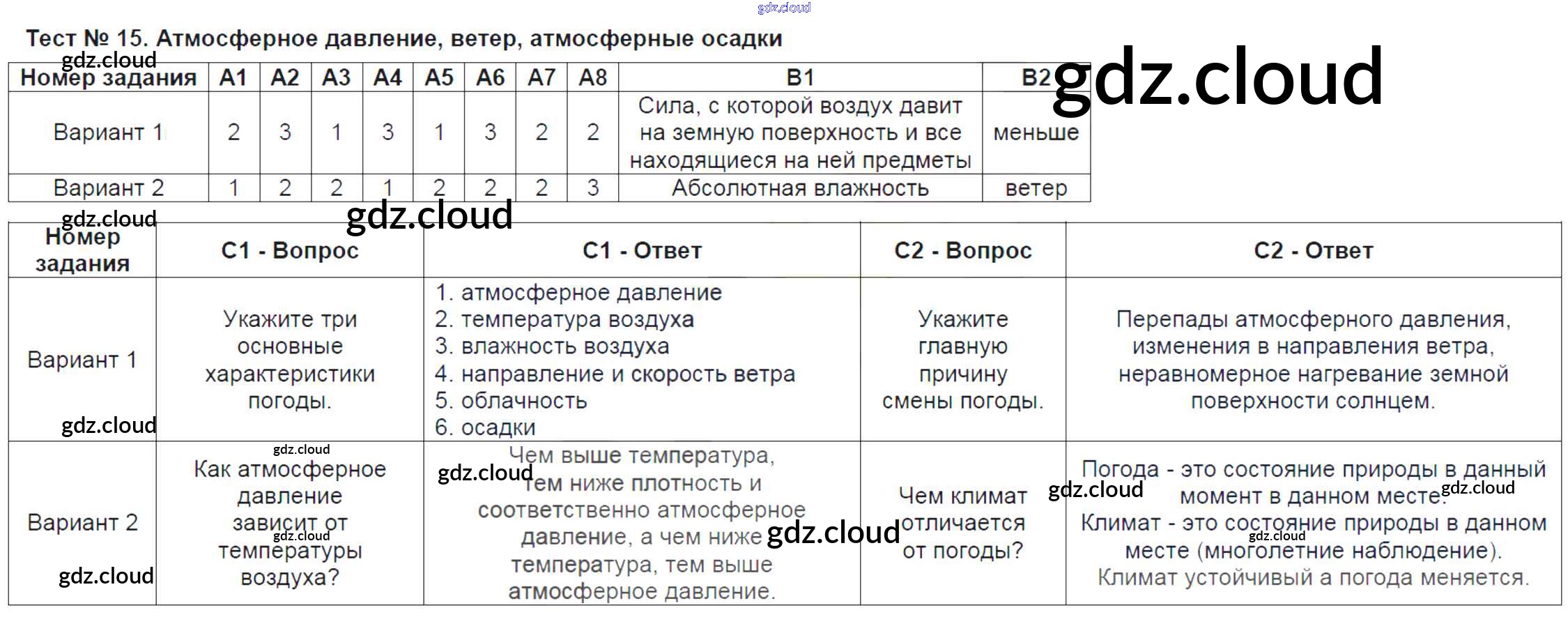 тест / тест-15. Атмосферное давление, ветер, атмосферные осадки