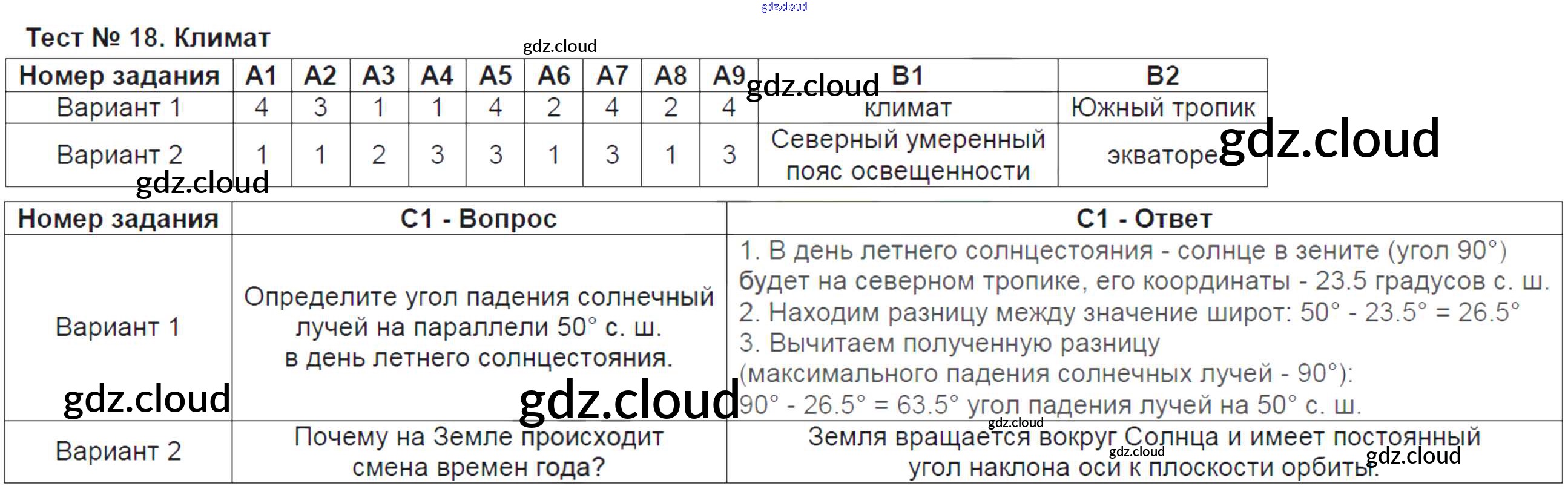 Ответ на задание Тест-18. Климат Контрольно-измерительные материалы (КИМ) География за 6 (шестой) класс Жижина 2018