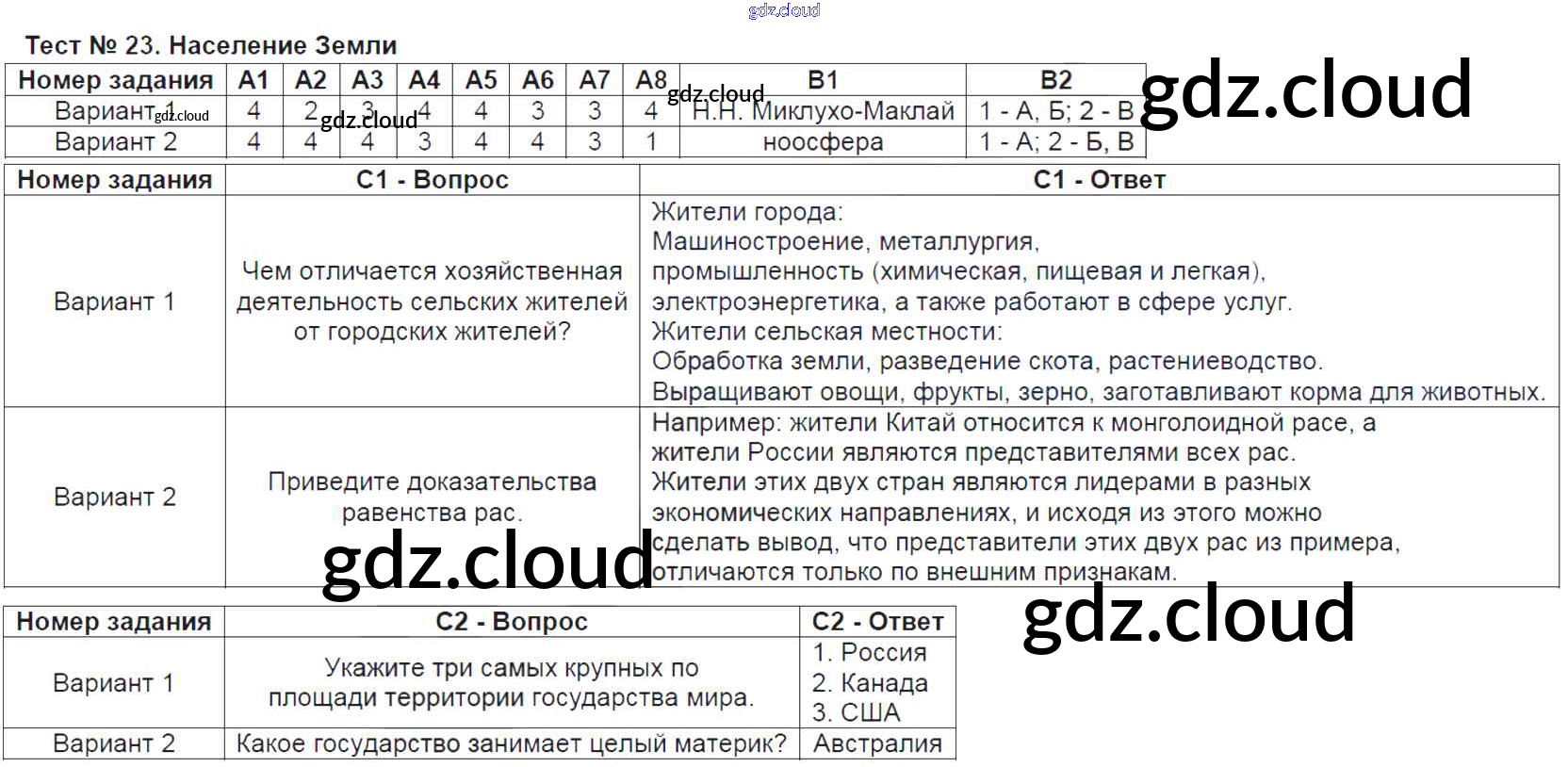 Ответ на задание Тест-23. Население Земли Контрольно-измерительные материалы (КИМ) География за 6 (шестой) класс Жижина 2018