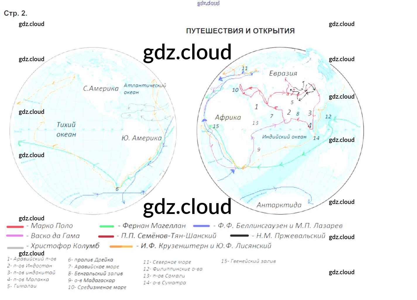 Ответ на задание стр.2 Контурные карты География за 6 (шестой) класс Курчина, Курбский 2019 Часть 1, 2