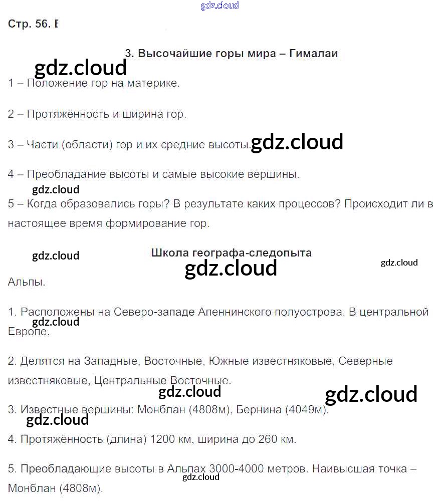 Ответ на задание 56 Дневник географа-следопыта География за 6 (шестой) класс Летягин Алгоритм успеха 2020 ФГОС онлайн и без номера телефона.