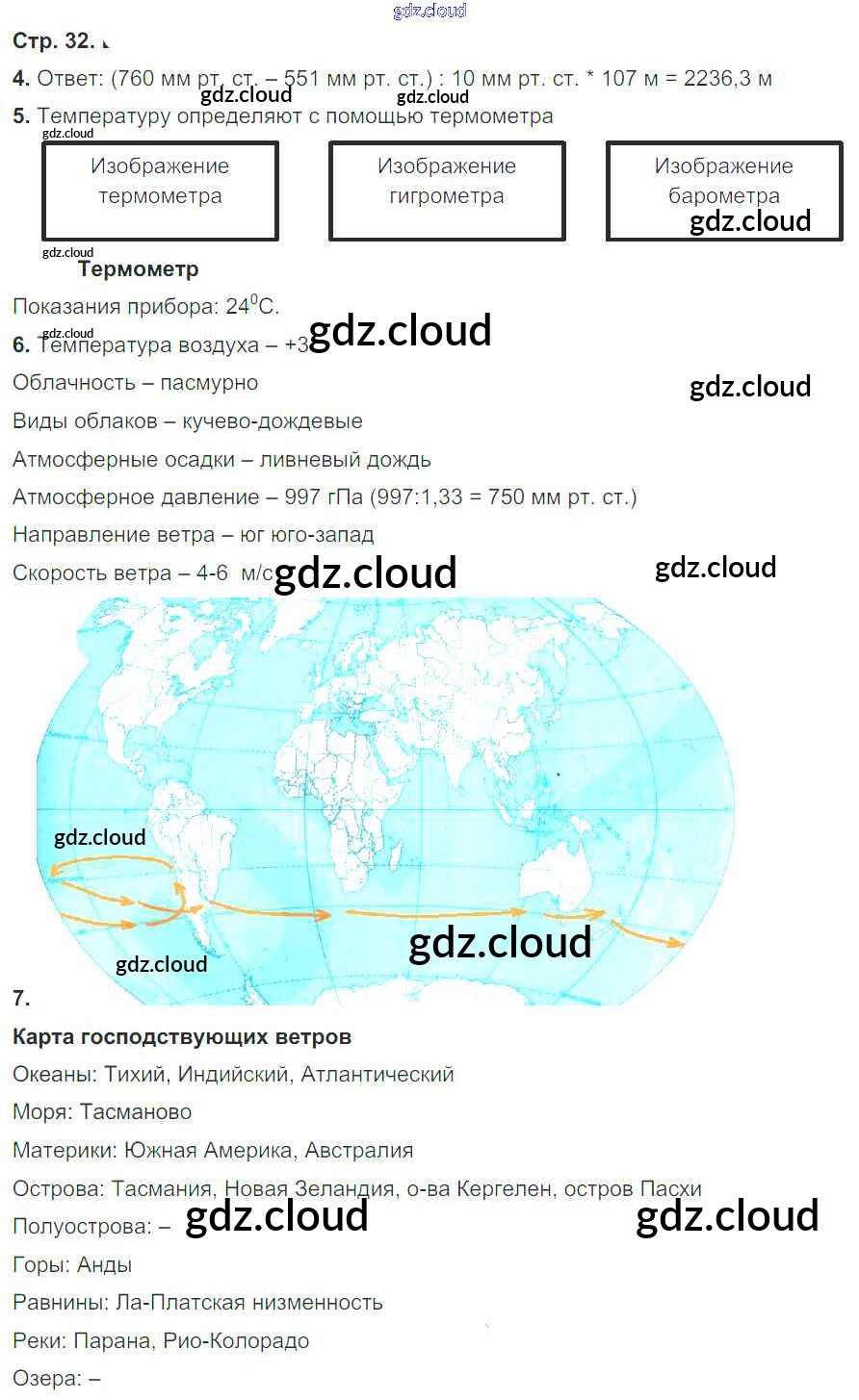 Ответ на задание 32 Проверочные и контрольные работы География за 6 (шестой) класс Летягин Алгоритм успеха 2018