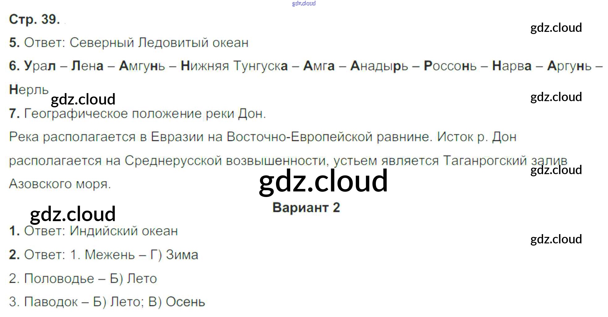 Ответ на задание 39 Проверочные и контрольные работы География за 6 (шестой) класс Летягин Алгоритм успеха 2018