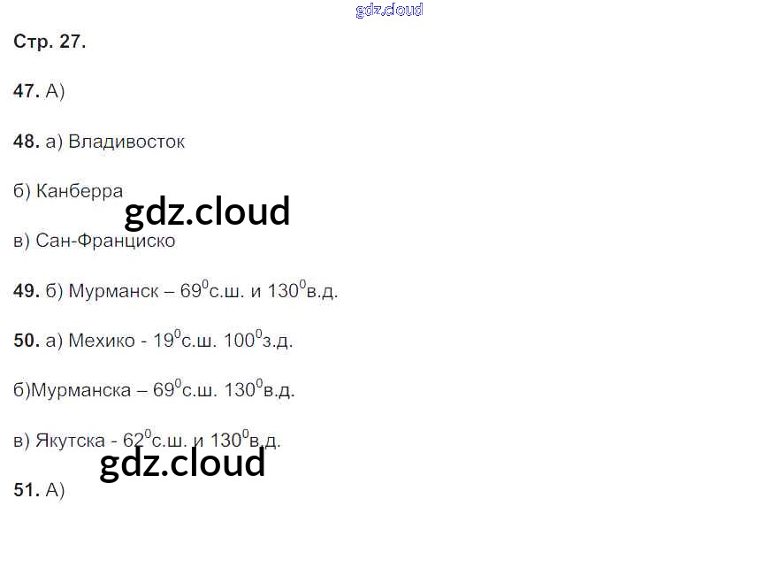 Ответ на задание 27 Мой тренажёр География за 5, 6 (пятый, шестой) класс Николина Полярная звезда 2014 ФГОС онлайн и без номера телефона.