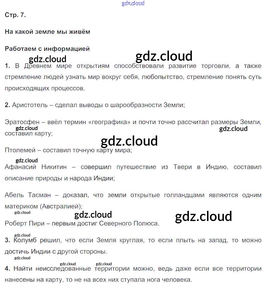 Ответ на задание 7 Мой тренажёр География за 5, 6 (пятый, шестой) класс Николина Полярная звезда 2014 ФГОС онлайн и без номера телефона.