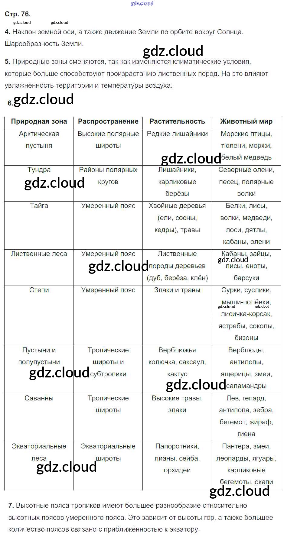 Ответ на задание 76 Мой тренажёр География за 5, 6 (пятый, шестой) класс Николина Полярная звезда 2014 ФГОС онлайн и без номера телефона.