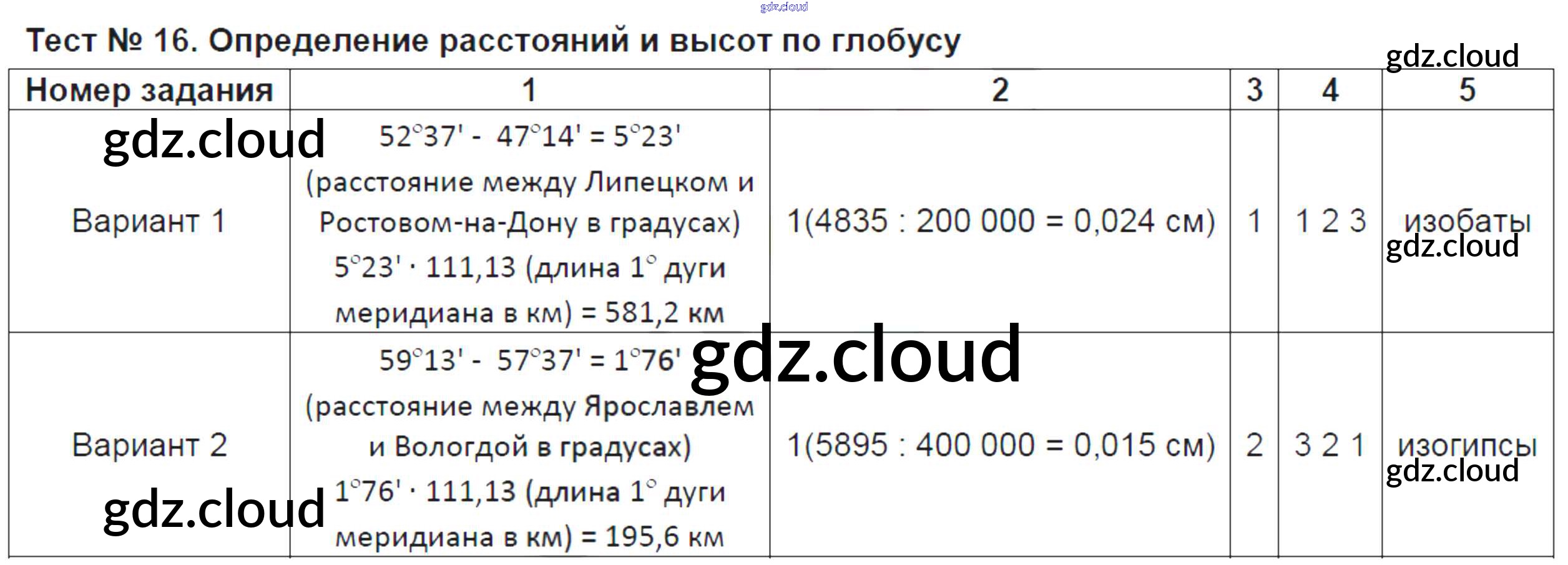 Ответ на задание Тест-16. Определение расстояний и высот по глобусу Тесты География за 6 (шестой) класс Пятунина, Пятунин УМК 2017 ФГОС онлайн и без номера телефона.