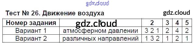 Ответ на задание Тест-26. Движение воздуха Тесты География за 6 (шестой) класс Пятунина, Пятунин УМК 2017 ФГОС онлайн и без номера телефона.