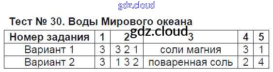 Ответ на задание Тест-30. Воды Мирового океана Тесты География за 6 (шестой) класс Пятунина, Пятунин УМК 2017 ФГОС онлайн и без номера телефона.