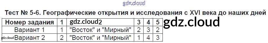 Ответ на задание Тест-5-6. Географические открытия и исследования с XVI века до наших дней Тесты География за 6 (шестой) класс Пятунина, Пятунин УМК 2017
