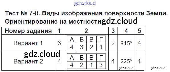 Ответ на задание Тест-7-8. Виды изображения поверхности Земли Тесты География за 6 (шестой) класс Пятунина, Пятунин УМК 2017 ФГОС онлайн и без номера телефона.