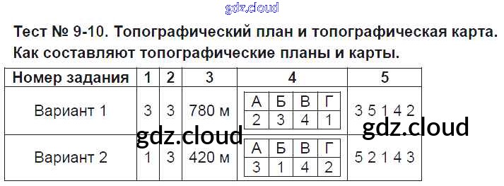Ответ на задание Тест-9-10. Топографический план и топографическая карта Тесты География за 6 (шестой) класс Пятунина, Пятунин УМК 2017