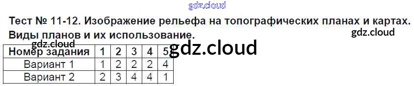 Ответ на задание Тест-11-12. Изображение рельефа на топографических планах и картах Тесты География за 6 (шестой) класс Пятунина, Пятунин УМК 2017