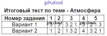 Ответ на задание Итоговый тест по теме - Атмосфера Тесты География за 6 (шестой) класс Пятунина, Пятунин УМК 2017