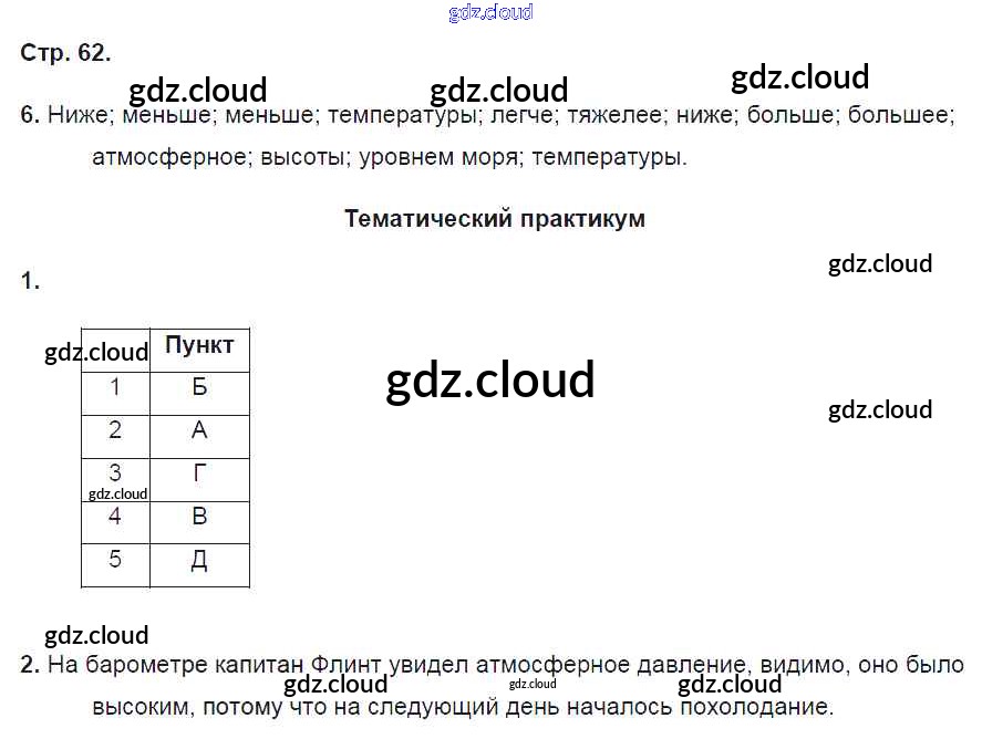 Ответ на задание стр.62 Рабочая тетрадь География за 6 (шестой) класс Домогацких Инновационная школа 2019 ФГОС онлайн и без номера телефона.