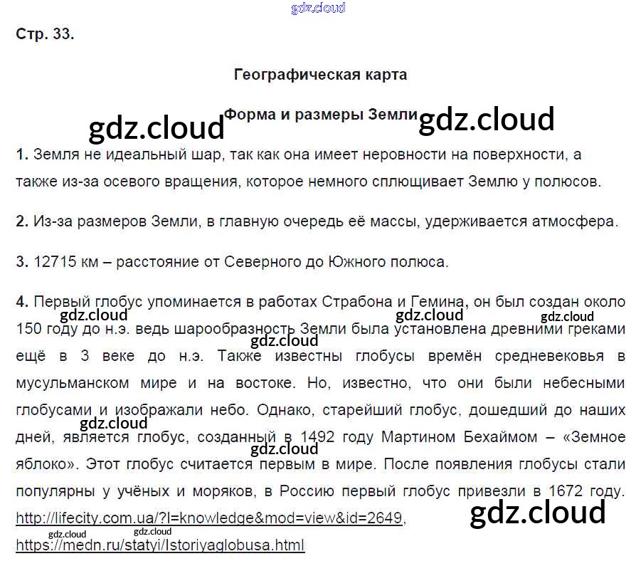 Ответ на задание 33 Рабочая тетрадь География за 6 (шестой) класс Карташева, Курчина Вертикаль 2020 ФГОС онлайн и без номера телефона.