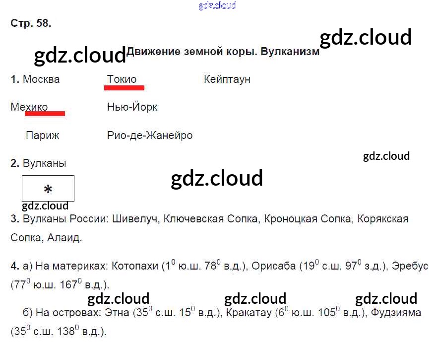 Ответ на задание 58 Рабочая тетрадь География за 6 (шестой) класс Карташева, Курчина Вертикаль 2020 ФГОС онлайн и без номера телефона.