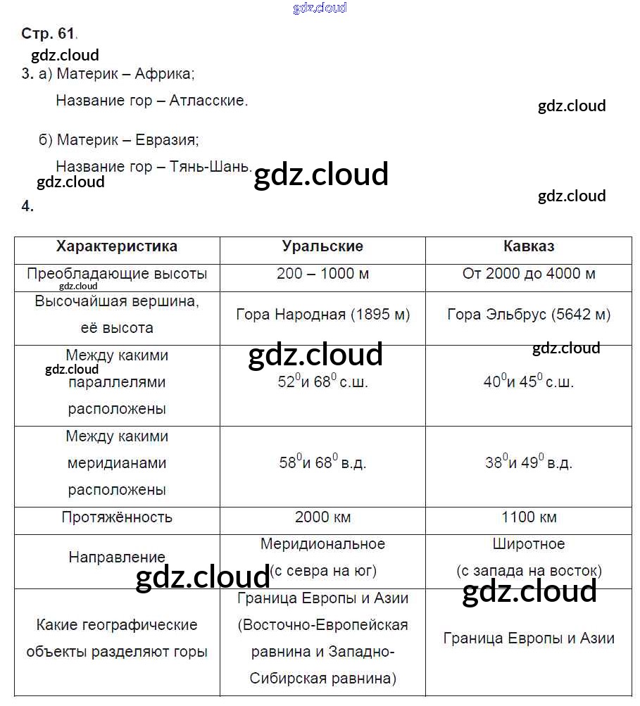 Ответ на задание 61 Рабочая тетрадь География за 6 (шестой) класс Карташева, Курчина Вертикаль 2020 ФГОС онлайн и без номера телефона.