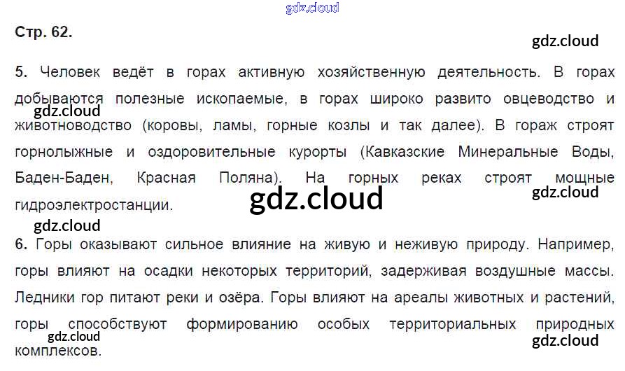 Ответ на задание 62 Рабочая тетрадь География за 6 (шестой) класс Карташева, Курчина Вертикаль 2020 ФГОС онлайн и без номера телефона.