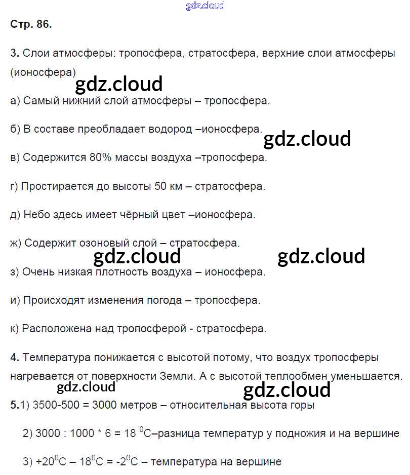 Ответ на задание 86 Рабочая тетрадь География за 6 (шестой) класс Карташева, Курчина Вертикаль 2020 ФГОС онлайн и без номера телефона.