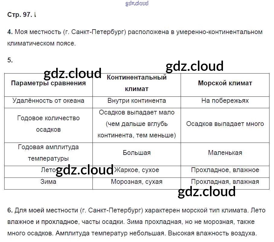Ответ на задание 97 Рабочая тетрадь География за 6 (шестой) класс Карташева, Курчина Вертикаль 2020 ФГОС онлайн и без номера телефона.