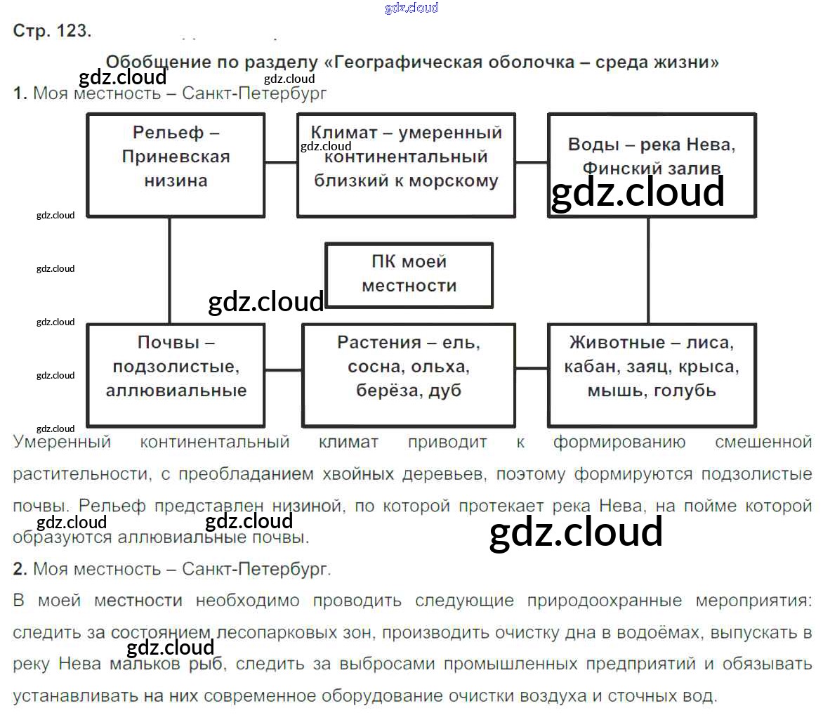 Ответ на задание 123 Рабочая тетрадь География за 6 (шестой) класс Румянцев, Ким, Климанова Вертикаль 2015 ФГОС онлайн и без номера телефона.