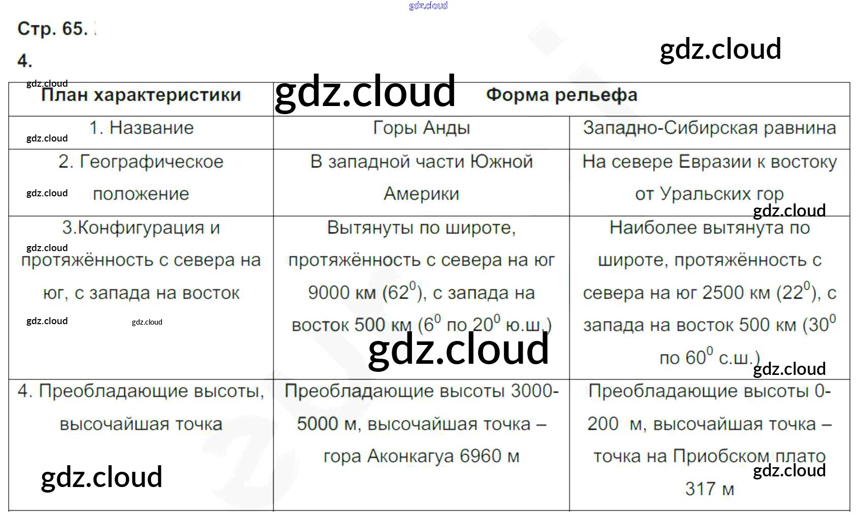 Ответ на задание 65 Рабочая тетрадь География за 6 (шестой) класс Румянцев, Ким, Климанова Вертикаль 2015 ФГОС онлайн и без номера телефона.